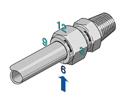 6.在卡套螺母擰緊一又四分之一轉(zhuǎn),它前進(jìn)了1/16inch(1.52mm),接頭完成了密封,抱緊管子的作用。